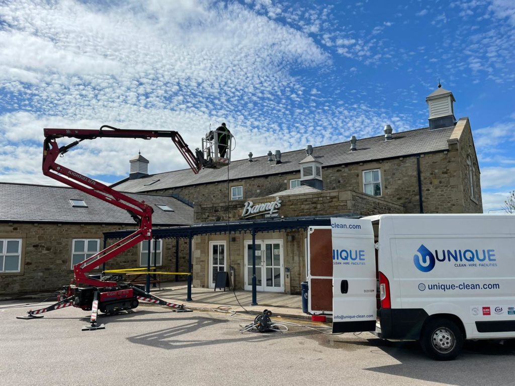 Unique Clean own various forms of access machines from scissor lifts, spider and 34M truck mount. Staff are also trained in the use of man-safe systems